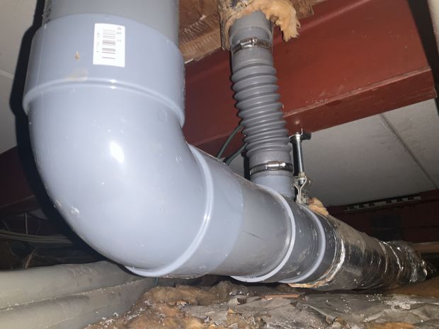 管を吊り下げていた金具が外れていて、異常な力がかかったのか継手に亀裂がありました。